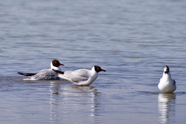 Die dunklen Handschwingen und die Schnabelform lassen mich an Lachmöwen denken (Vogelwurm)