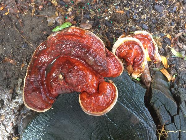 If on coniferous....Ganoderma tsugae If on deciduous....G. lucidum. a.k.a. Reishi
