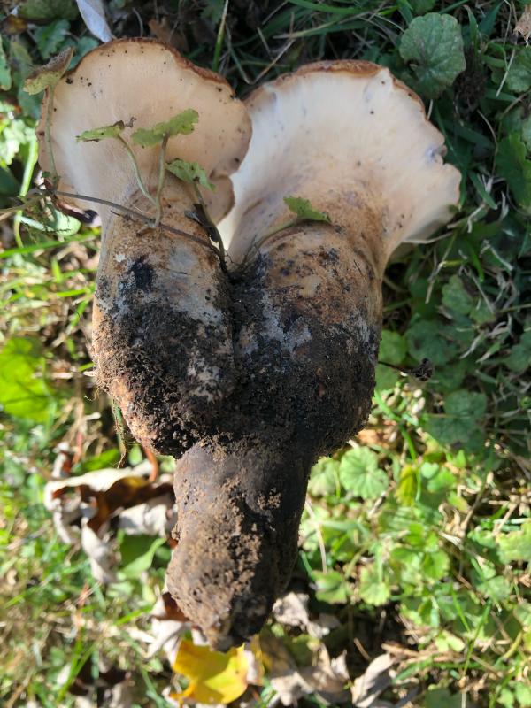 a ploypore with a long black root, should be a Rooting Polypore