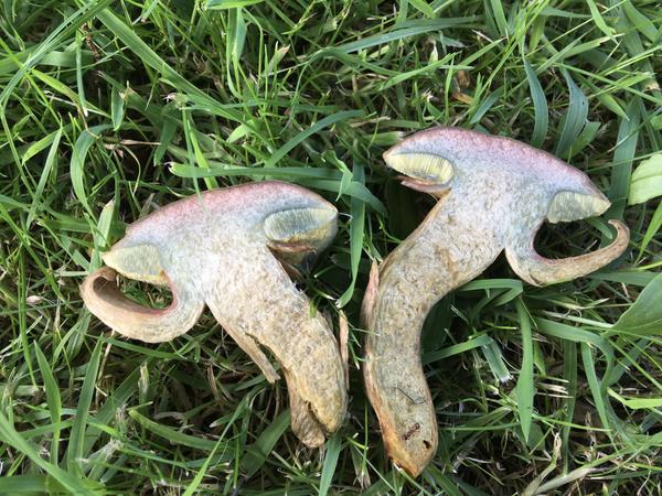 Fungi tango. Hortiboletus bubalinus. Sunrise above the sea staining. Growing with Lyme.