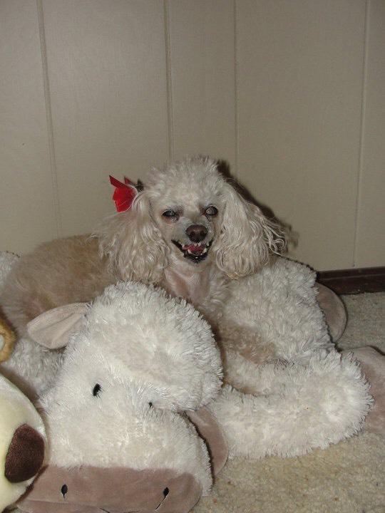 Natalie was my sister's toy poodle. She lived to be 17. She was a sweet, beautiful girl. We miss her. ❤️🐶😇