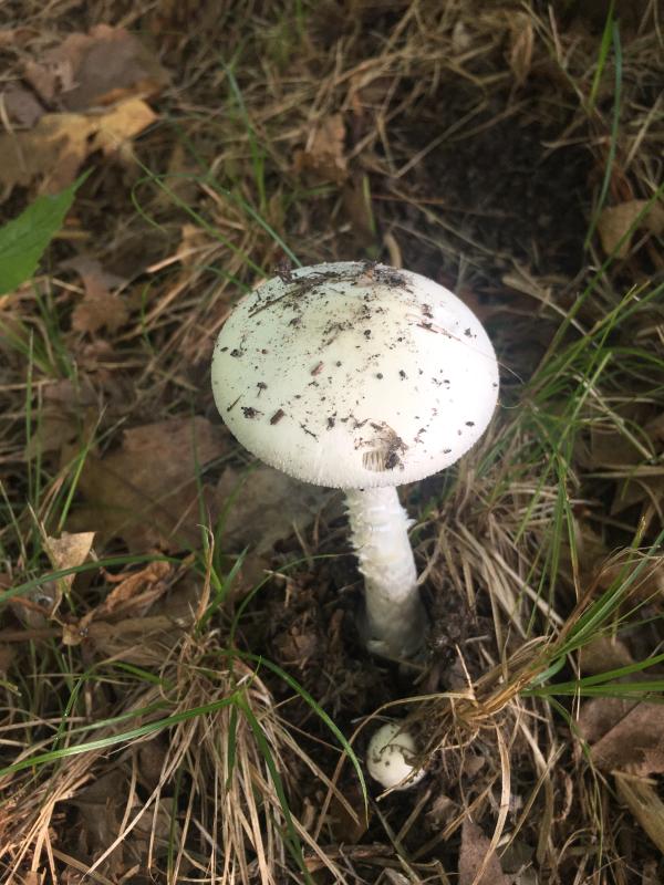könnte die weiße Variante des Grünen Knollenblätterpilzes sein