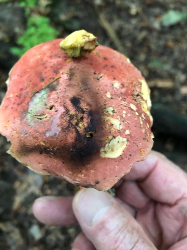 Brown spore print on the Rubroboletus rhodosanguineus if that helps in the other forums.thanks