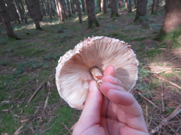 Der Parasol hat einen verschiebbaren Ring, sein giftiger Vertreter hat auch einen Ring, der aber fest am Stil ist.