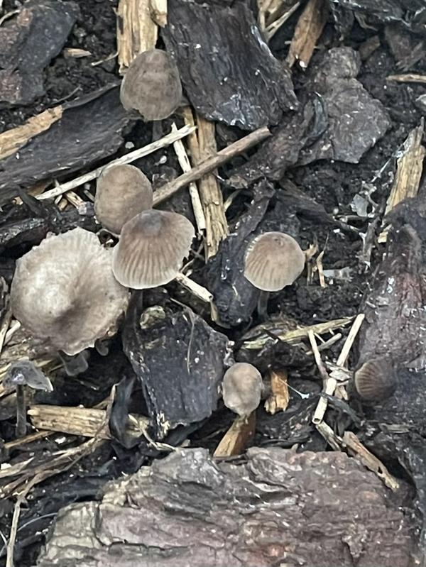 Hello, any idea what these are growing in wood chipping at front of house? Are they harmful in any way?