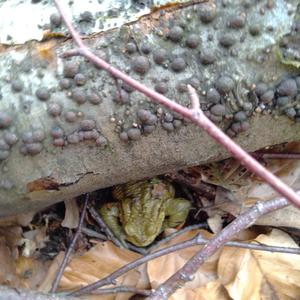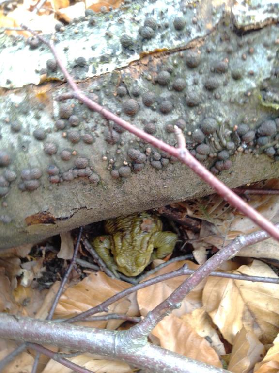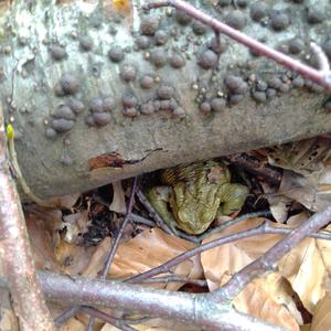 Eine Kröte und Hypoxylon fragiforme.