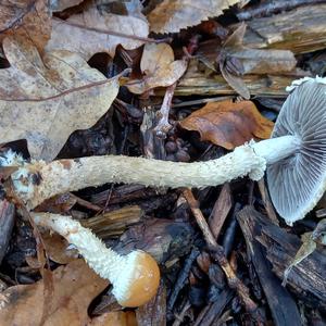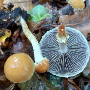 Ist der Schuppige Träuschling, Stropharia squamosa. Der äußerst seltene Ziegelrote oder richtiger Orangerote Träuschling sieht anders aus.