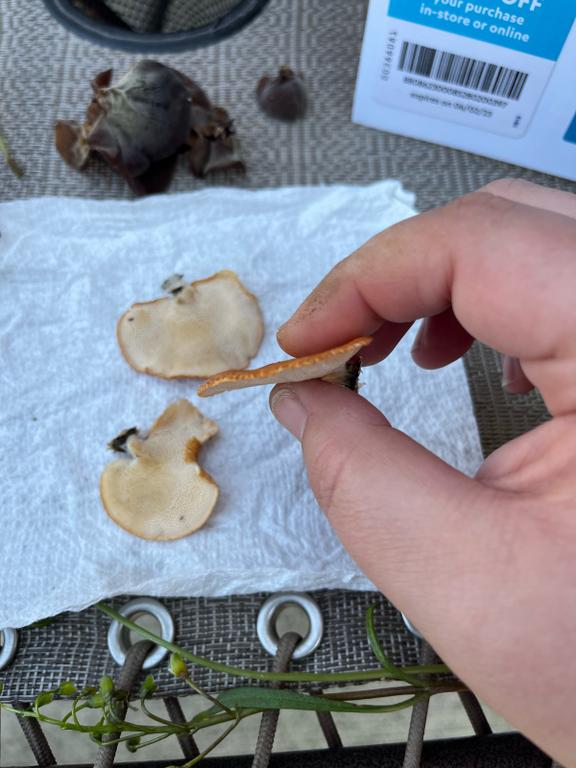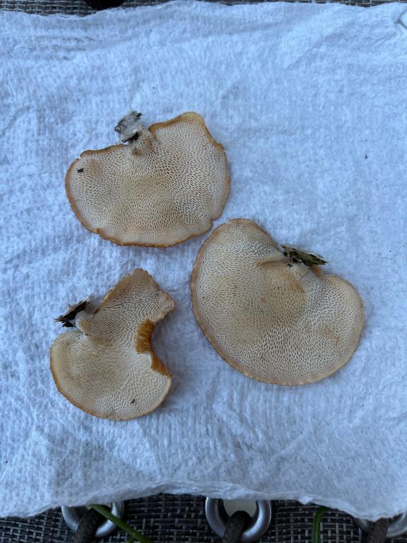 Maybe POLYPORUS ALVEOLARIS, POLYPORUS MORI, HEXAGONIA MORI)