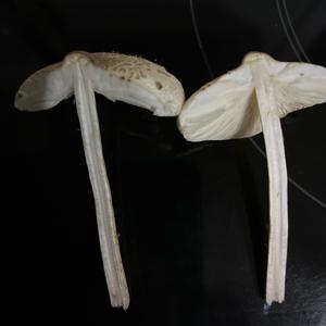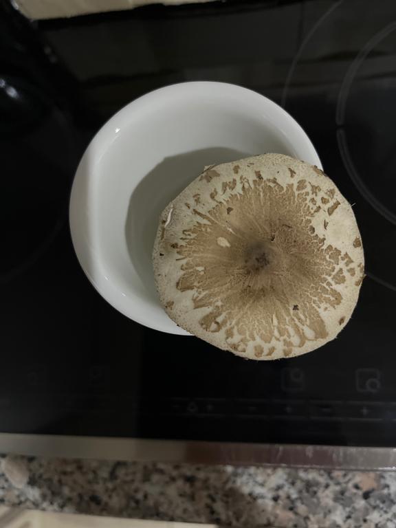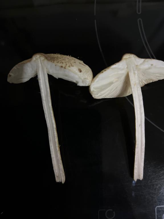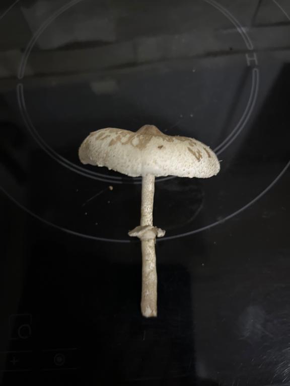 Parasol-Verwandtschaft, eventuell Rickens Riesenschirmling, Macrolepiota rickenii oder Warzen-Riesenschirmling, M. mastoidea.