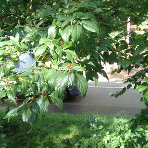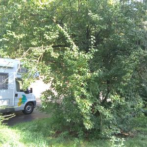 Es handelt sich um einen verzweigten Baum mit einer groben Rinde