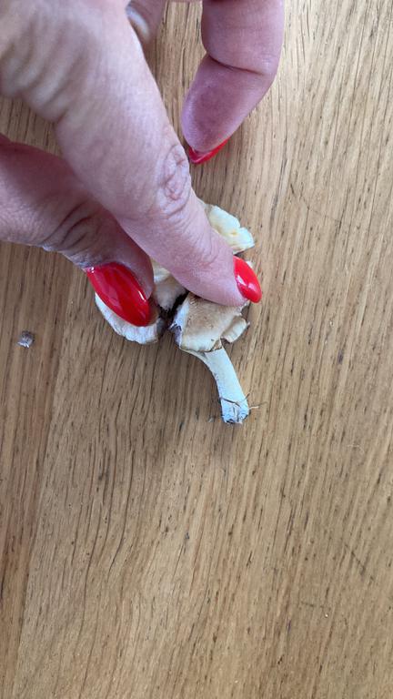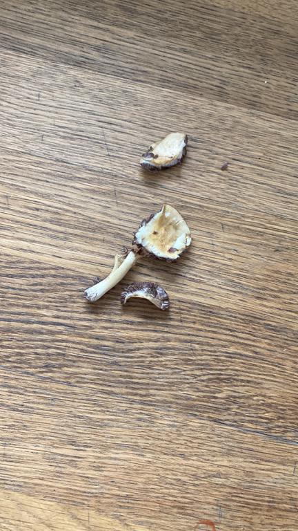 Die zerbröselten Pilzreste sind per Foto unbestimmbar. Hier einen Namen zu kreieren ist unseriös.