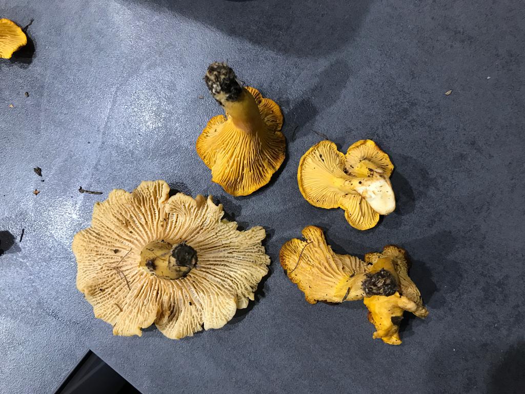 Visiblement tous Cantharellus , comestibles, mais un peu trop avancées en mâturité😉