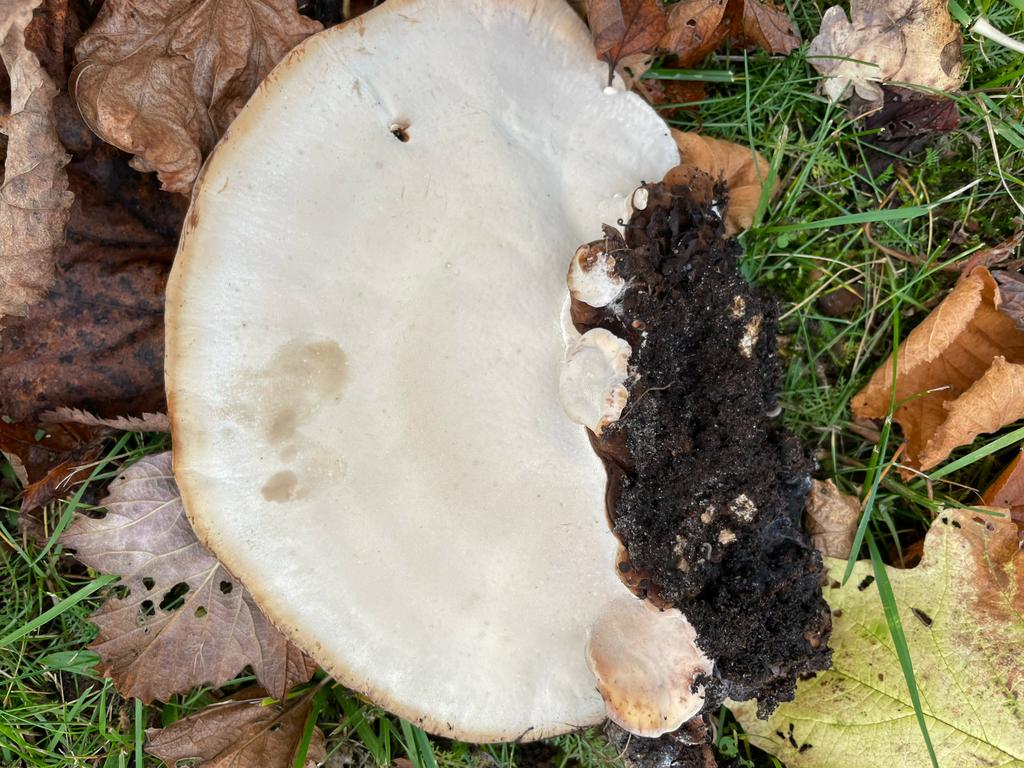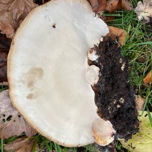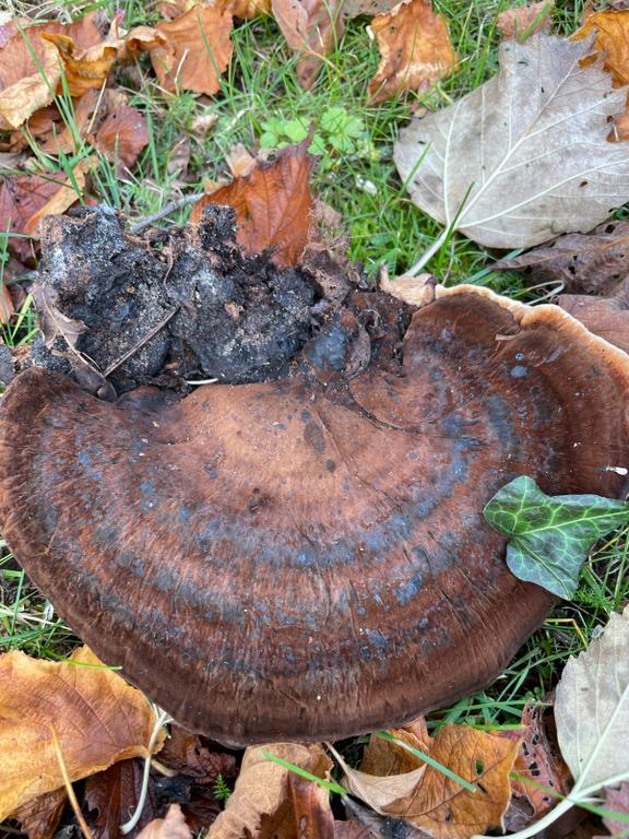 Schwarzgebänderter Harzporling, Ischnoderma benzoinum. Dürfte an Nadelholz gewachsen sein.