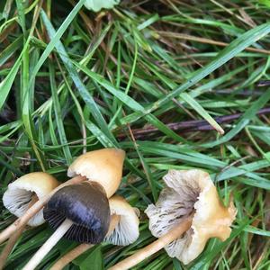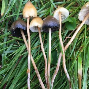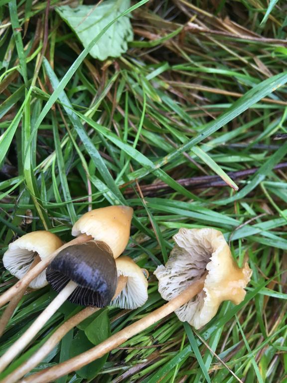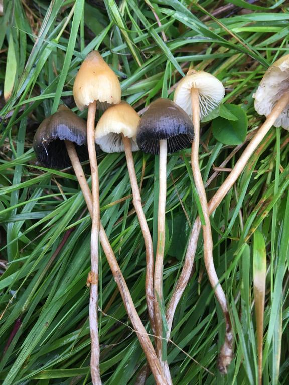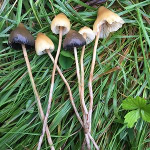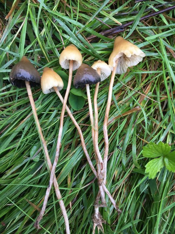 Zwei verschiedene Arten: Die dunkle vermutlich Psilocybe semilanceata. Mikroskop!!
