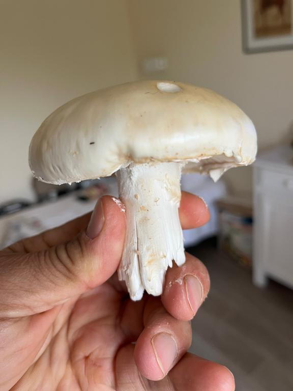 Agaricus oder Leucoagaricus spec. kann man nicht so gut erkennen, Stiel fehlt !