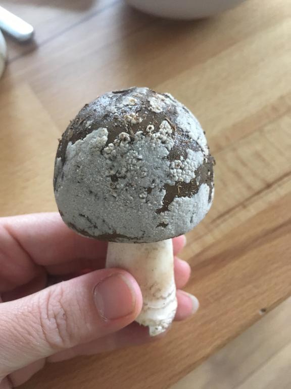 Moin wahrscheinlich der Graue Wulstling, leider fehlt die Stielbasis!!! Sie ist sehr wichtig zur Bestimmung!!! Ist der Stielring auf der Oberseite gerieft ?
