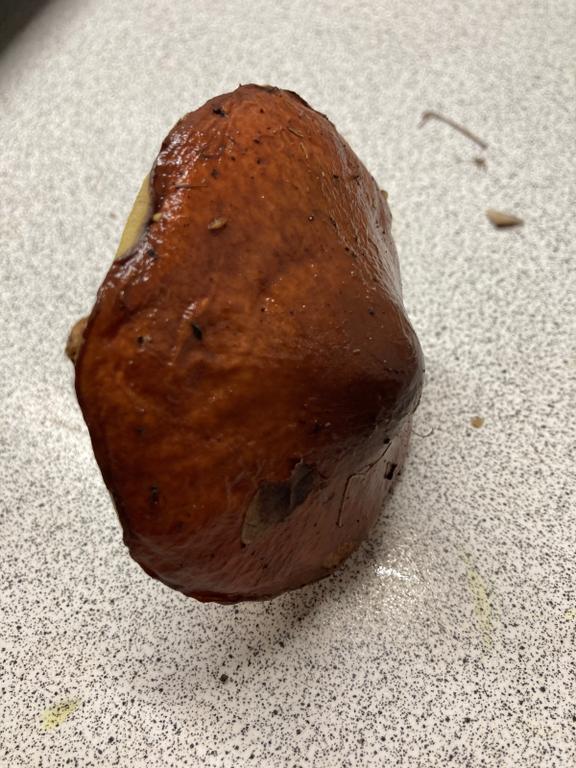 Butterröhrling, Suillus luteus. Ziemlich alt, deshalb nur noch mit schwachen Ringresten!