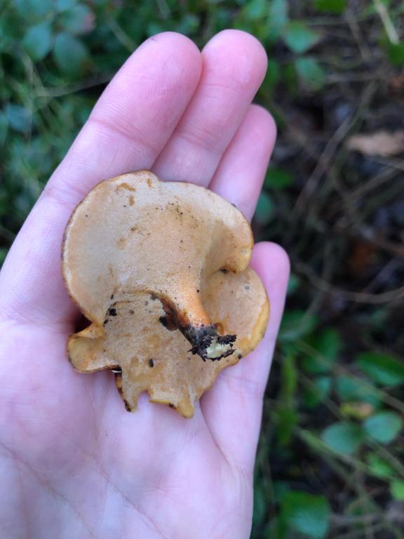 Polyporus leptocephalus, now Ceratioporus l. Löwengelber Schwarzfußporling, schon etwas alt.