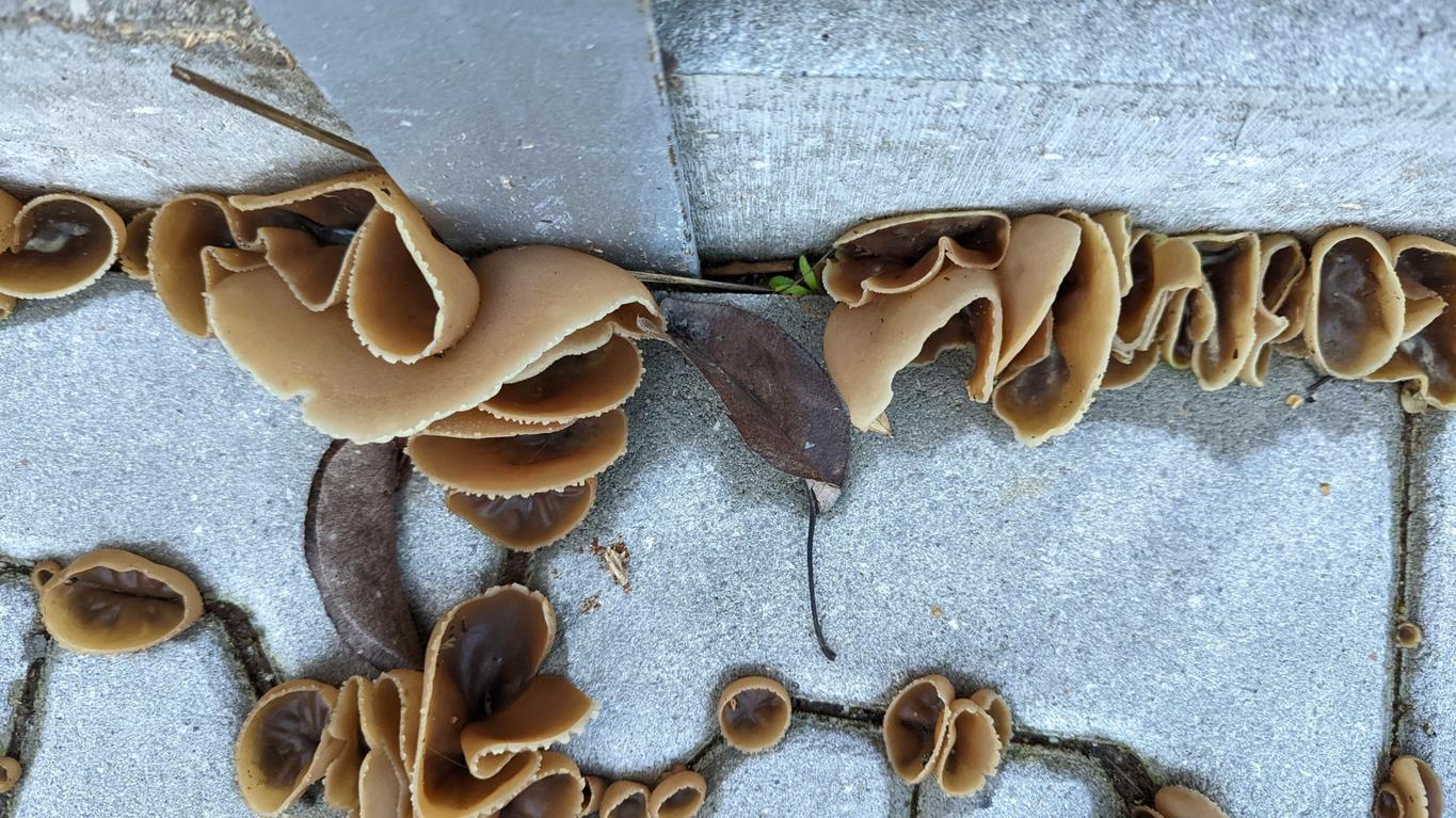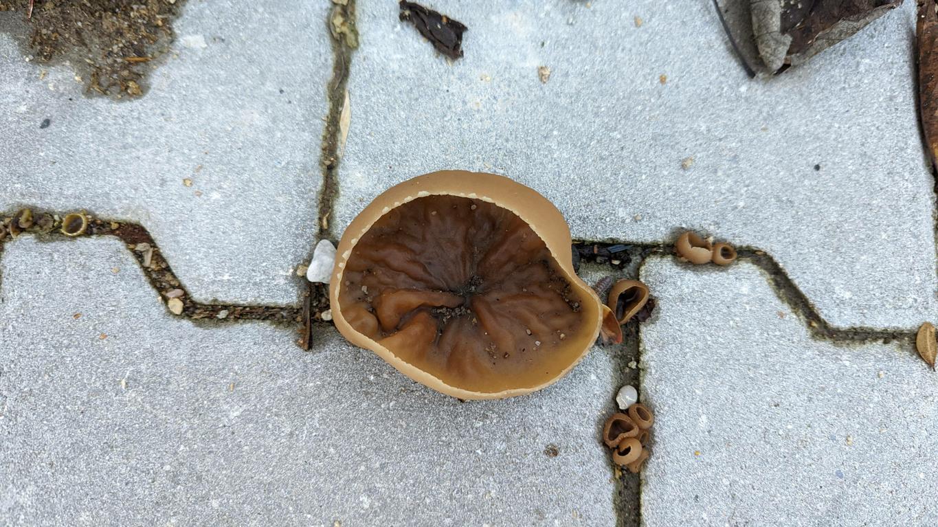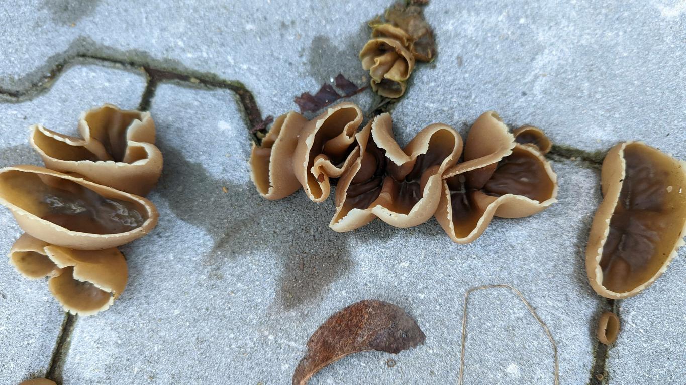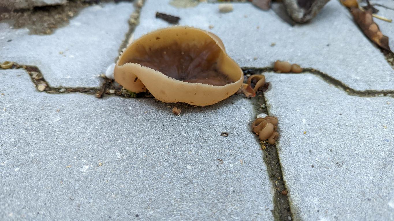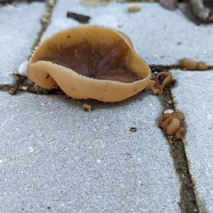 Ohne mikroskopische Untersuchung Peziza spec. Der gekerbte Hutrand deutet eher auf Peziza micropus. Interessanter Standort!