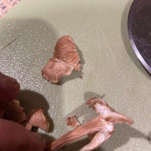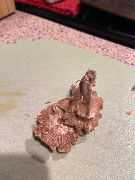 Look at Laccaria, probably Laccaria proxima. But the specimens are very old!