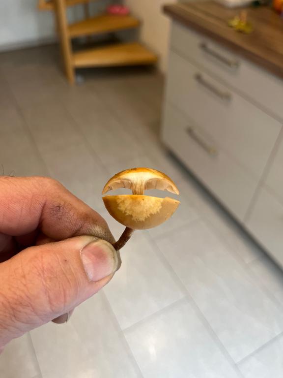 Leider unscharf. Wg der Ringzone und des Flockigen Stils wohl Stockschwämmchen.