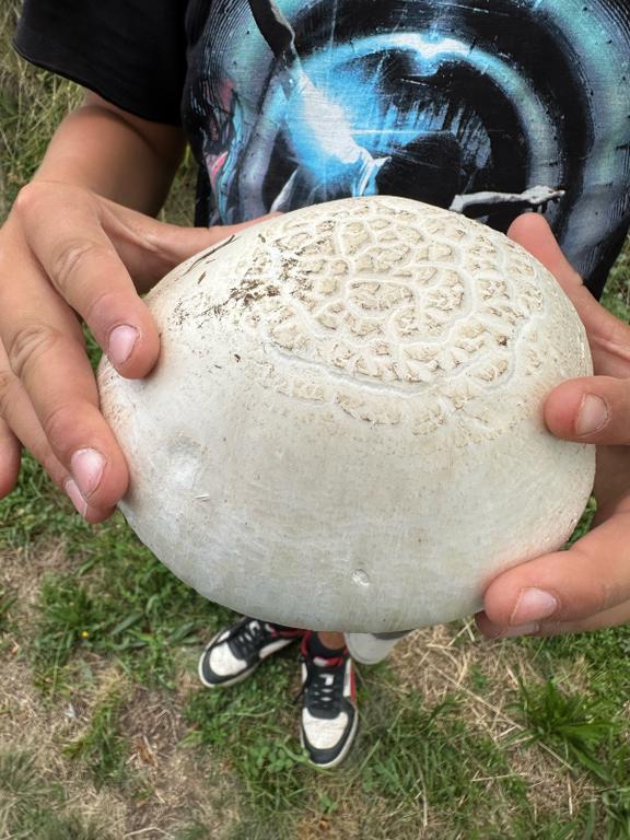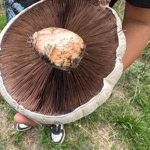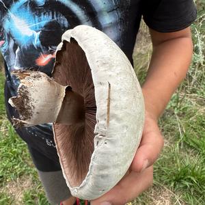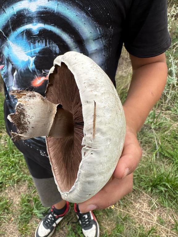 Aufgrund der Größe vermutlich Großsporiger Champignon (Agaricus Urinascens).