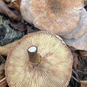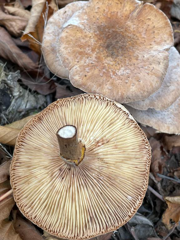 Zwo different species: Armillaria ostoyae and Lactarius spec. Please send only pictures of a single species.