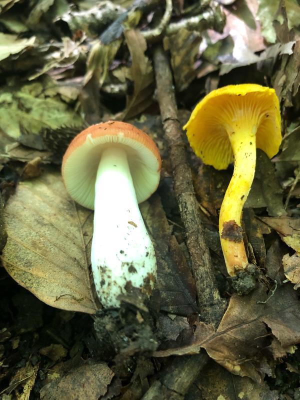 Red russula and chanterelle common