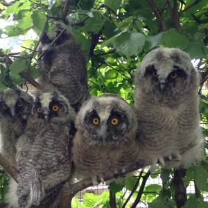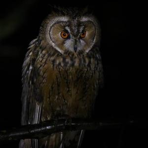 The plumage of the Long-eared Owl is black-brown striped on a pale brown background. The primaries and secondaries have dark stripes. Generally, females have mainly dark tones. In contrast, the basic coloration of males is a little paler.